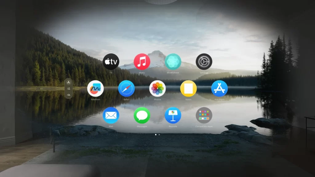 visionOS combina contenido digital con el espacio físico del usuario, proporcionando un lienzo infinito para aplicaciones, juegos y otras experiencias espaciales. Los usuarios pueden transformar su espacio con Entornos: vistas dinámicas y hermosas con paisajes sonoros realistas.